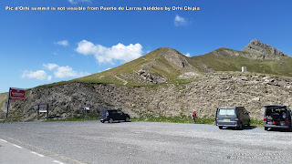 | Pic d'Orhi summit is not vissible from Puerto de Larrau hiddden by Orhi Chipia on right |
